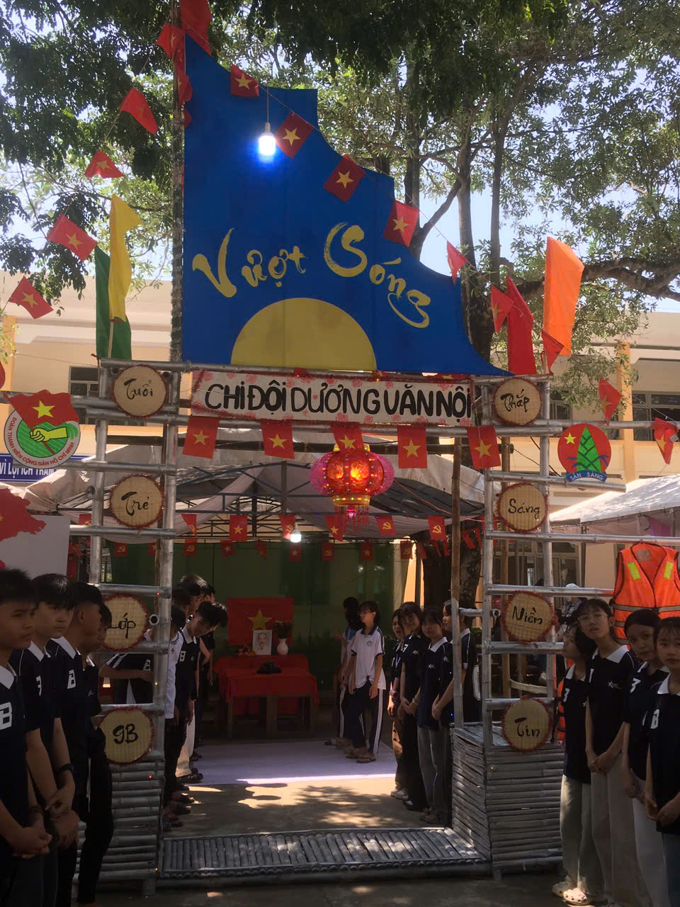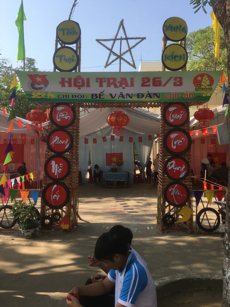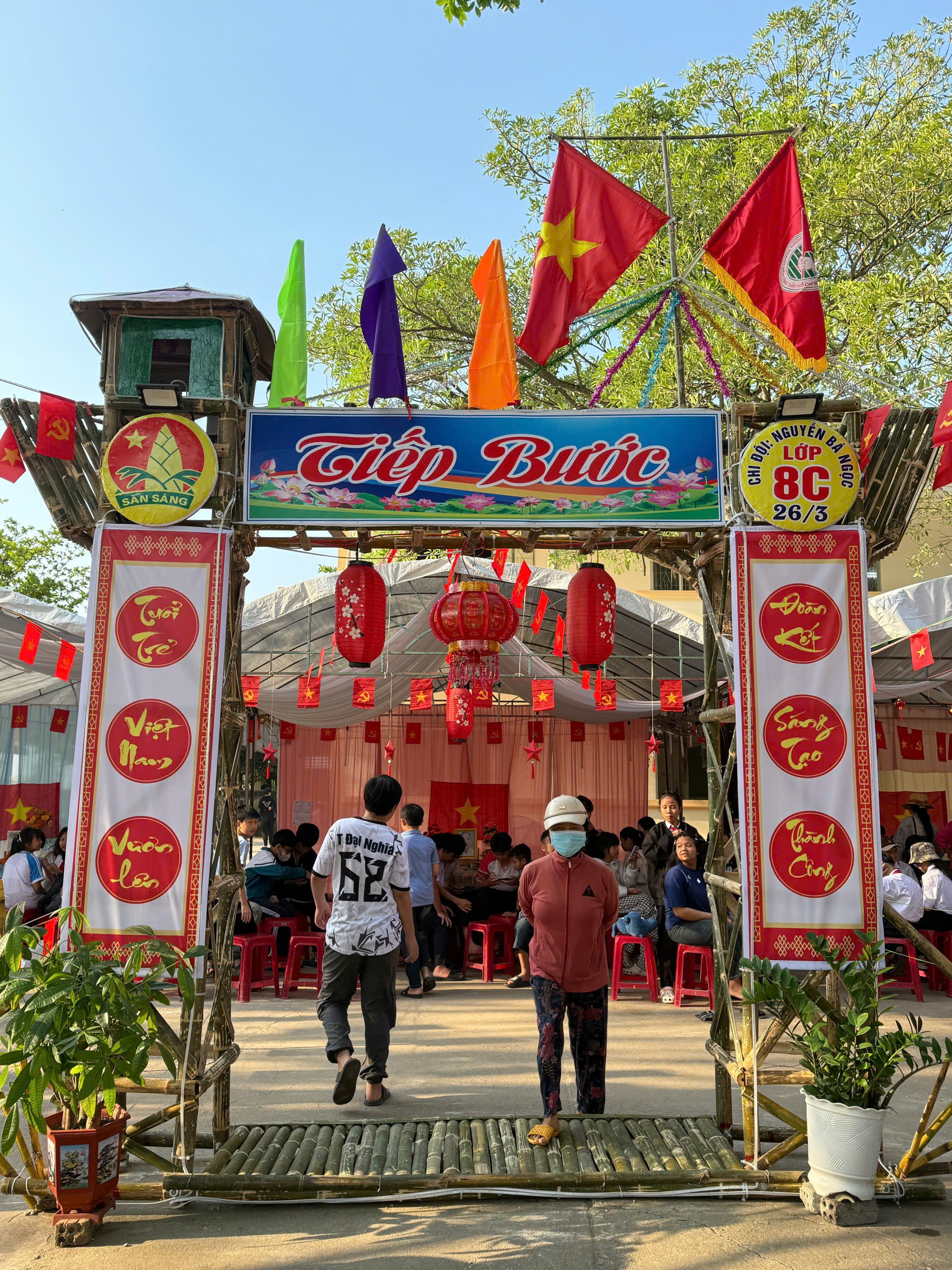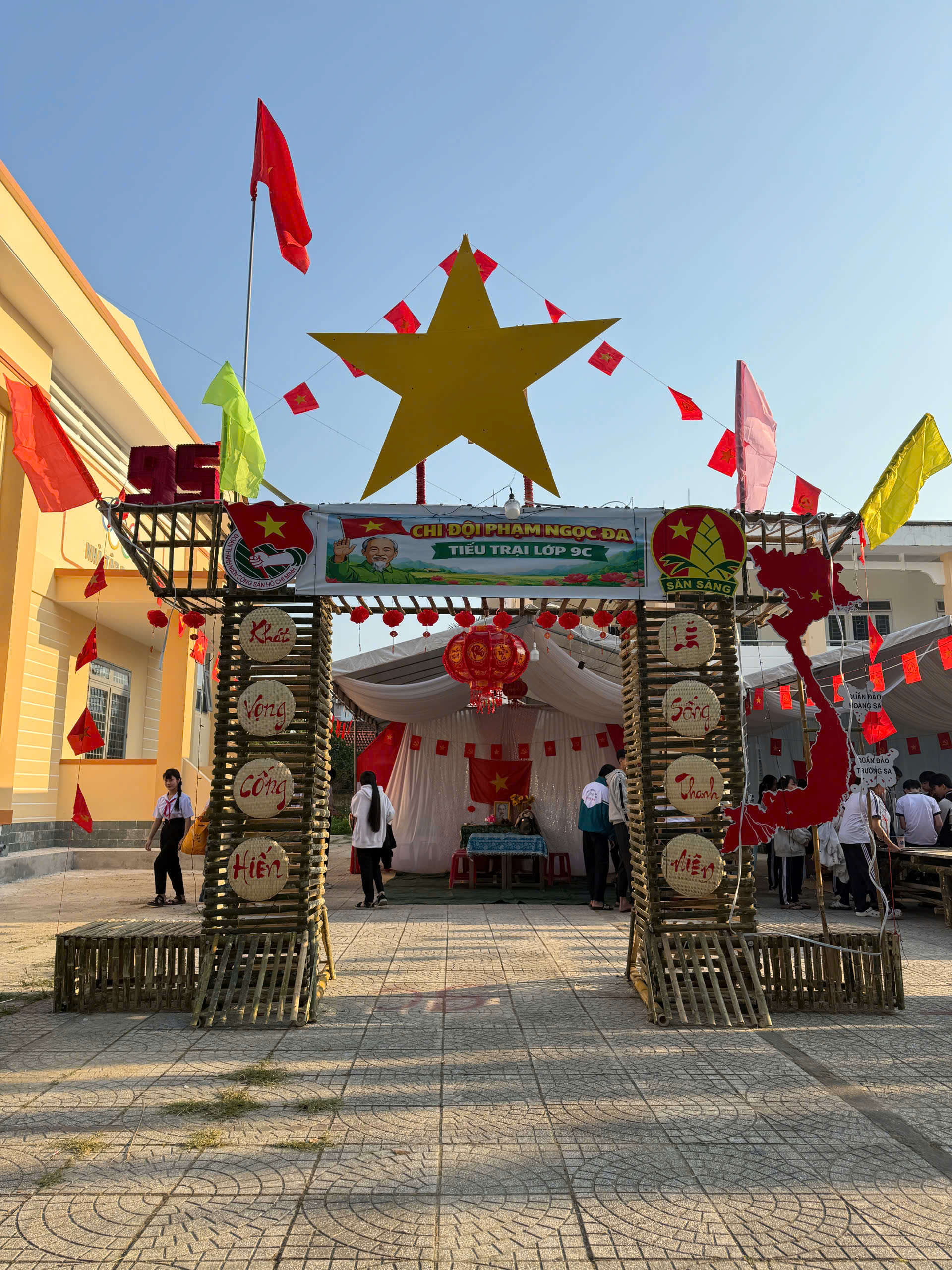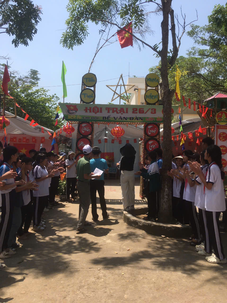 Dựng trại và trang trí trại: Các chi đội đã thể hiện sự sáng tạo qua những cổng trại đẹp mắt, mang đậm chủ đề và bản sắc riêng.