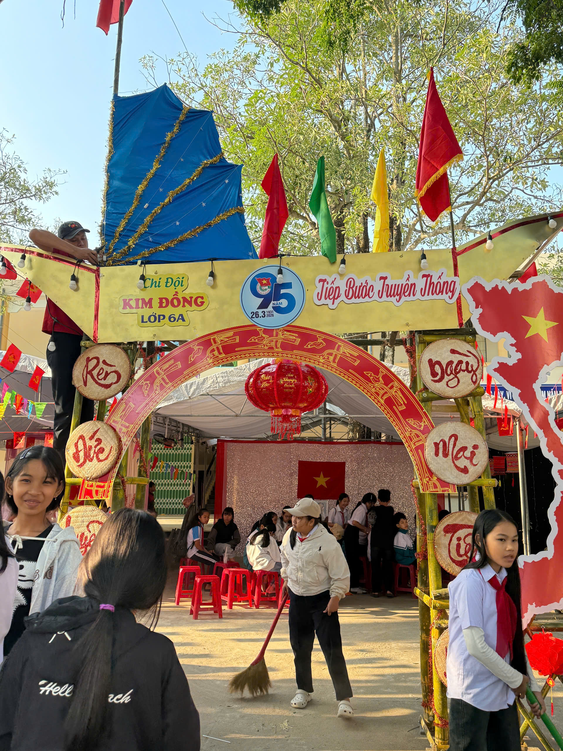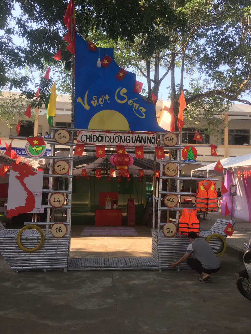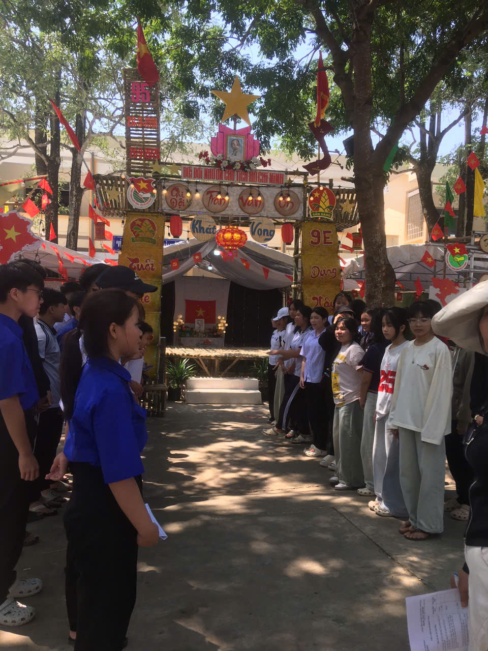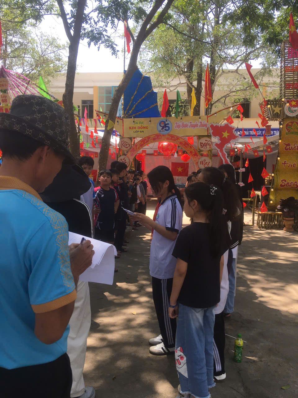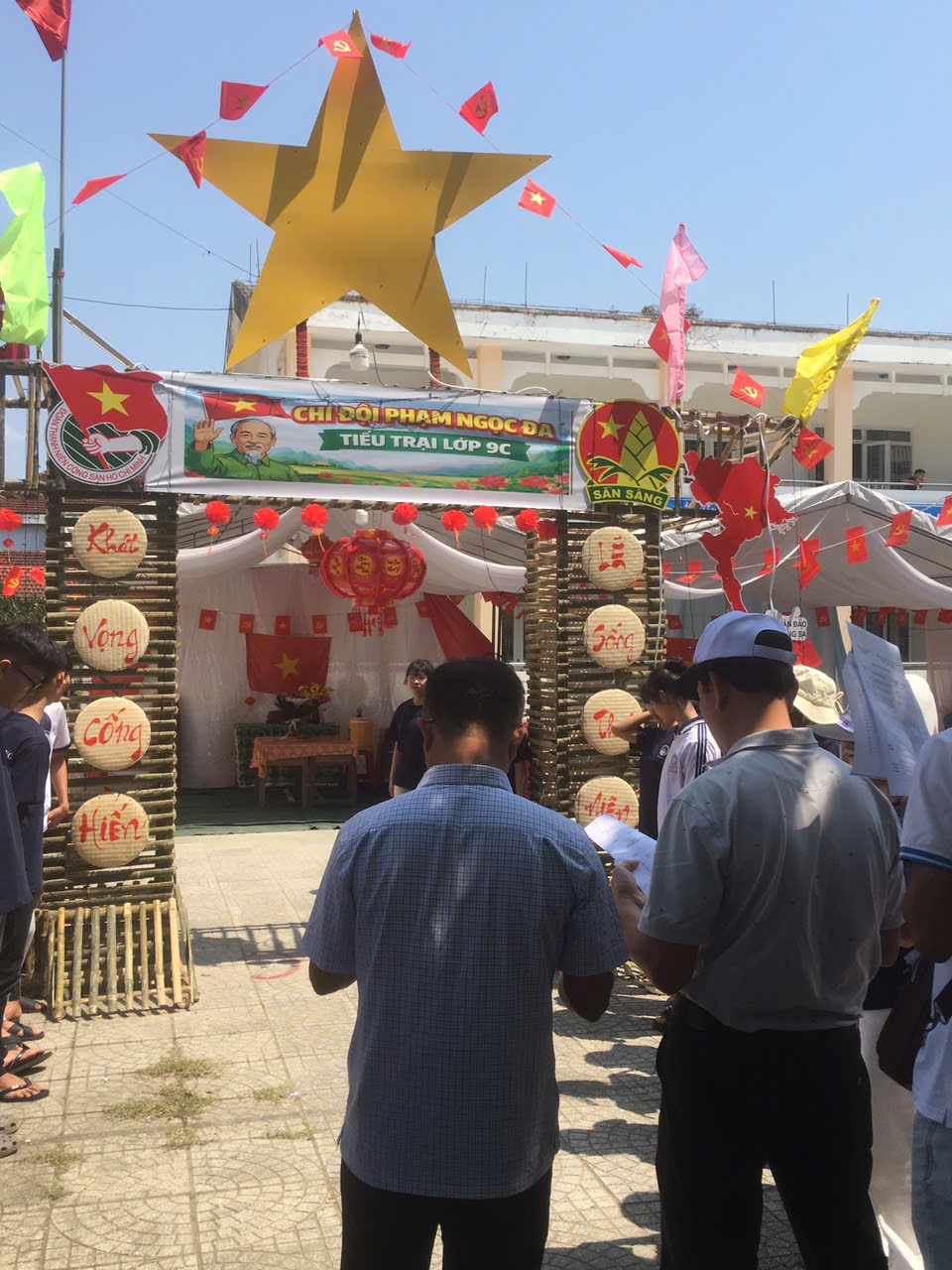 Dựng trại và trang trí trại: Các chi đội đã thể hiện sự sáng tạo qua những cổng trại đẹp mắt, mang đậm chủ đề và bản sắc riêng.
