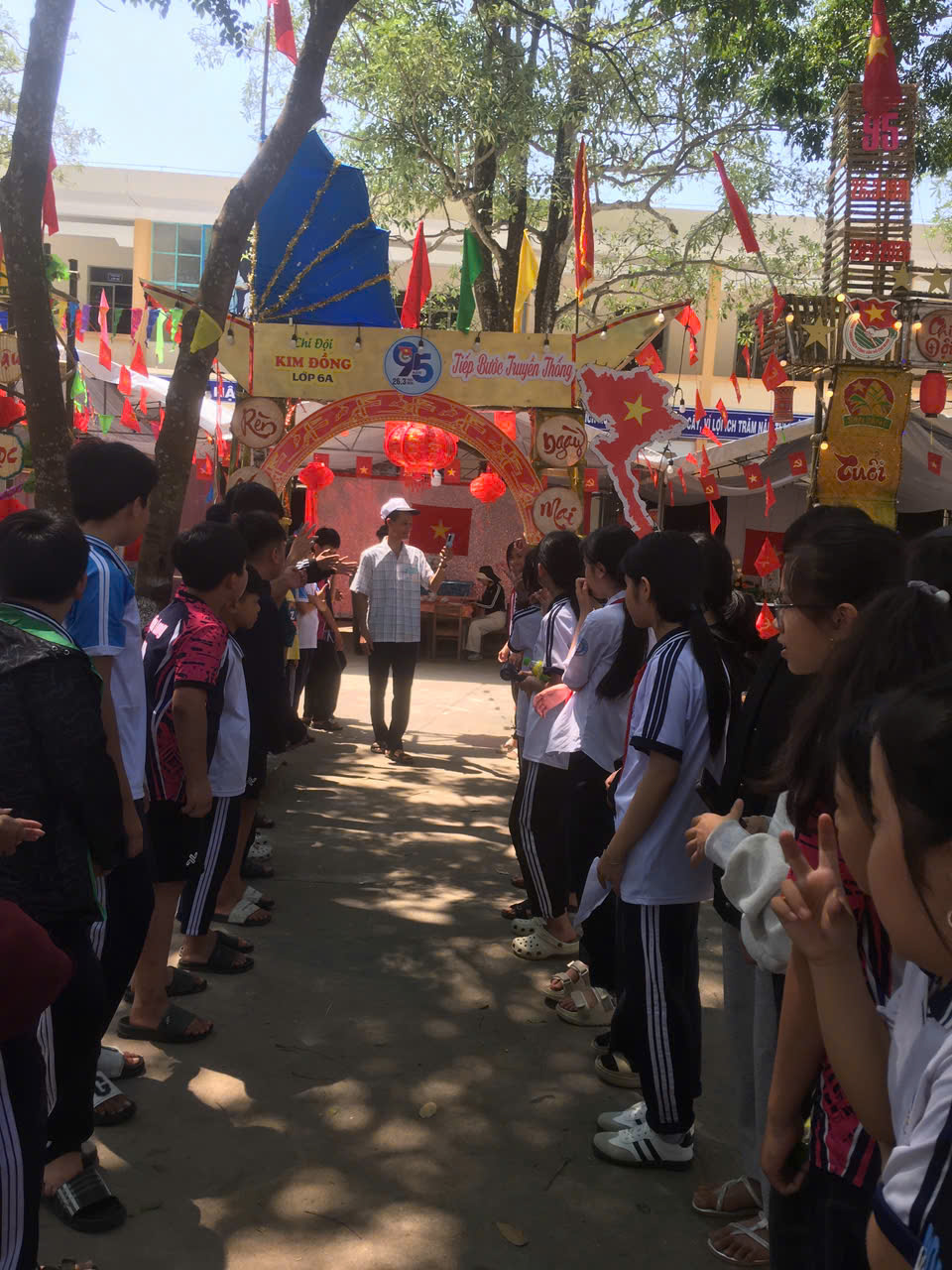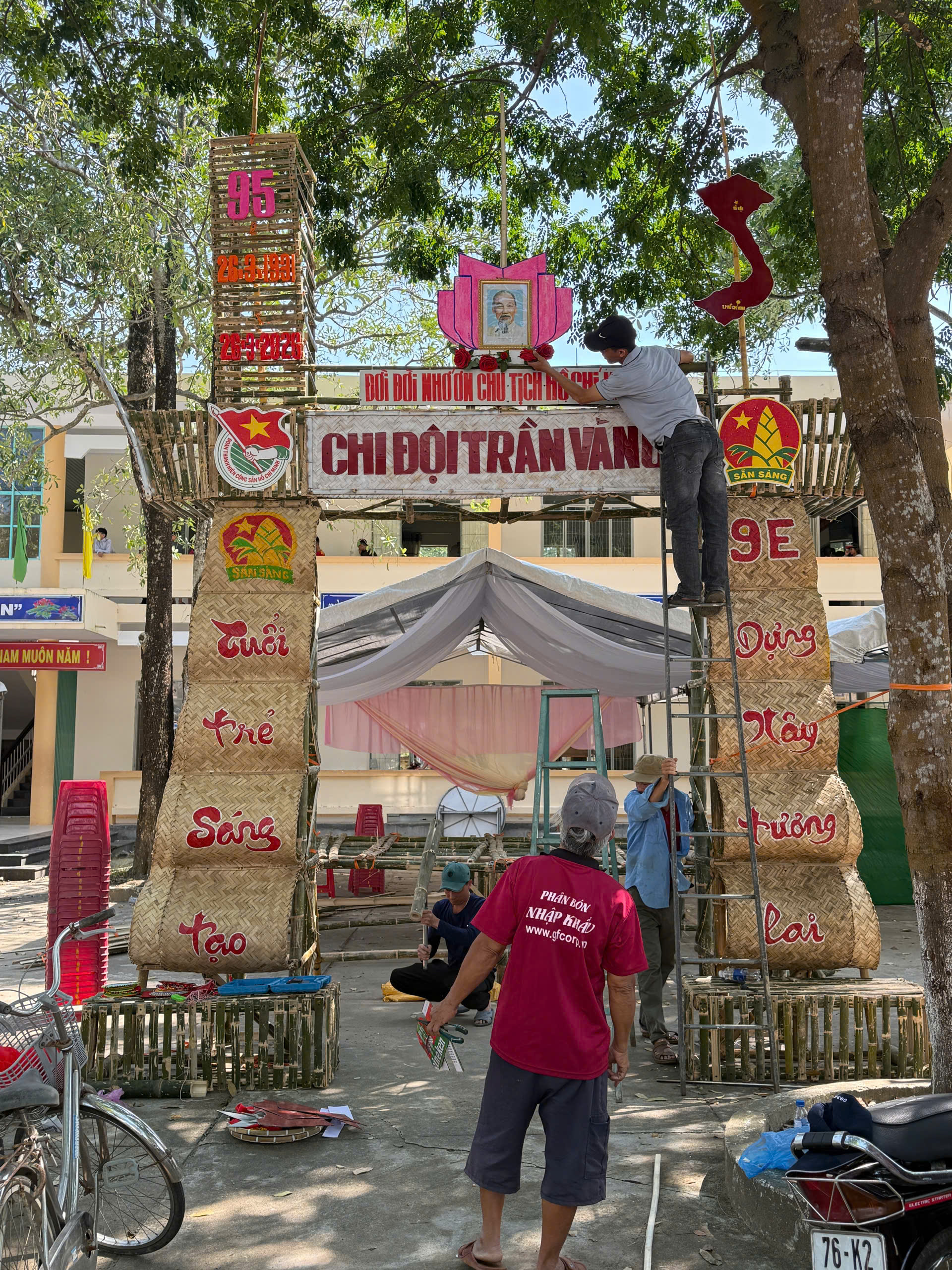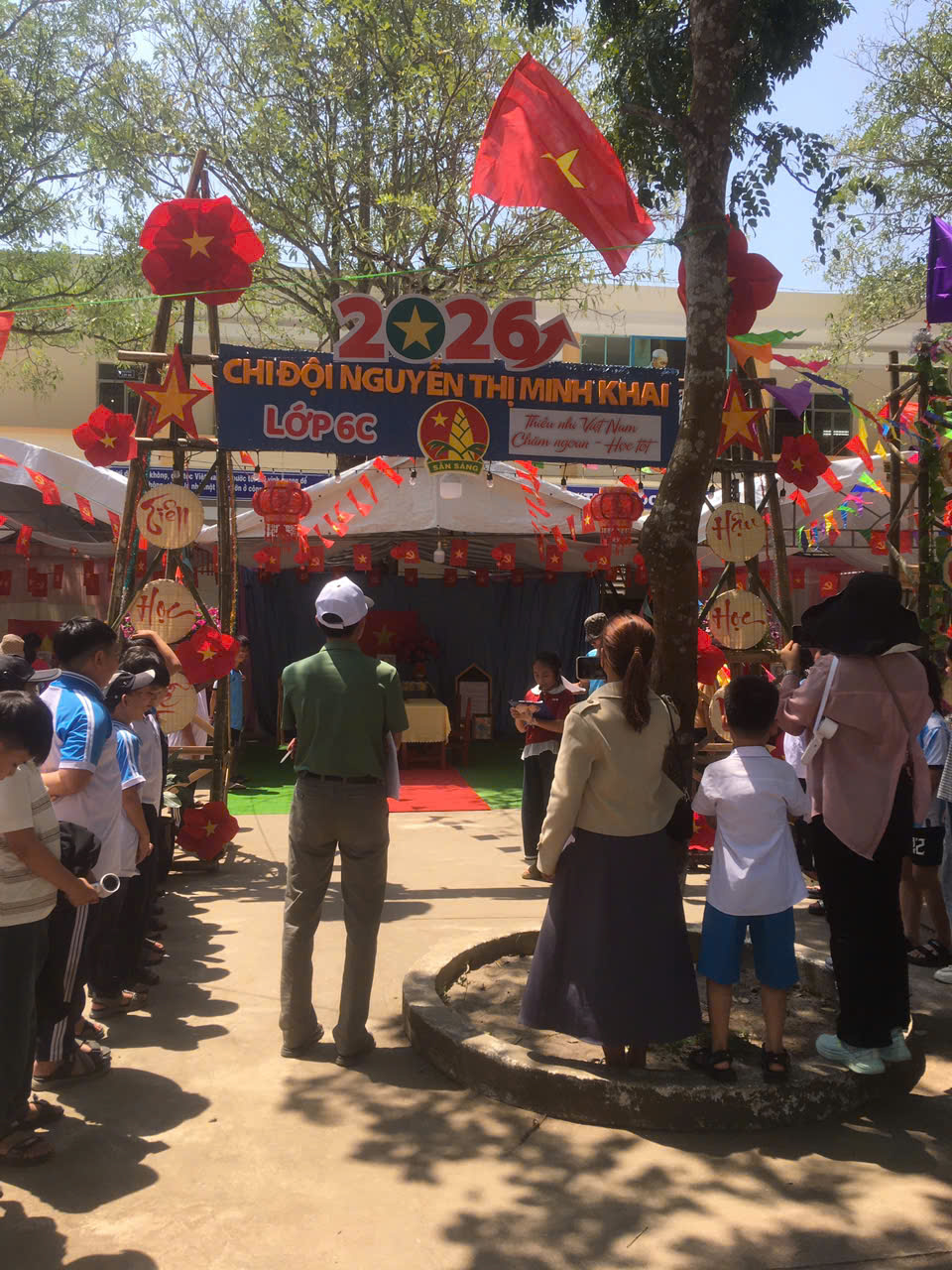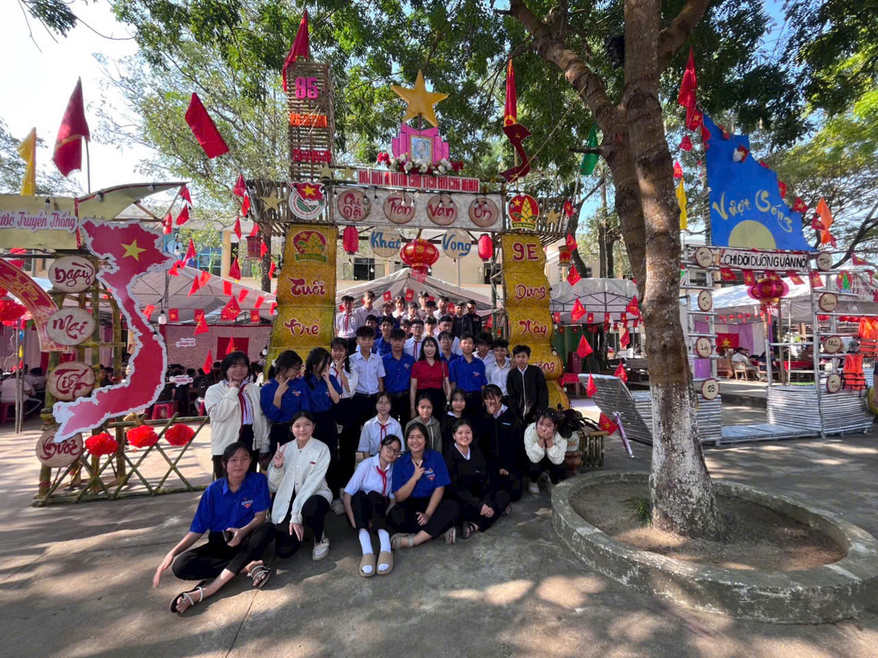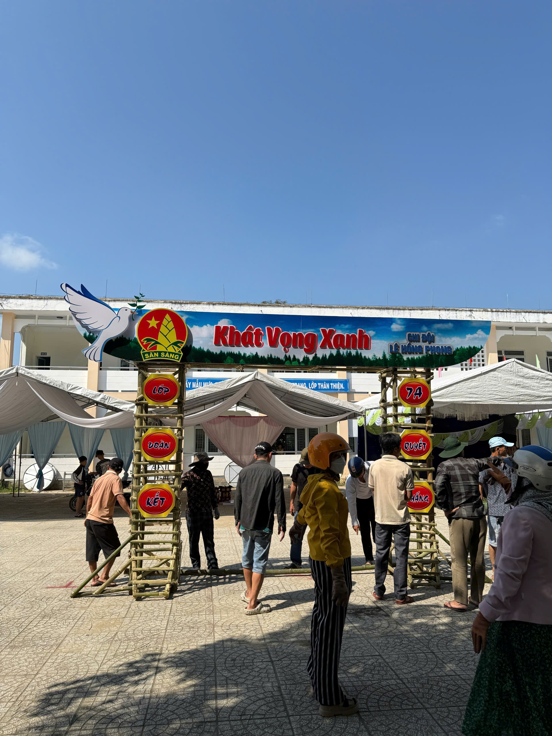 Dựng trại và trang trí trại: Các chi đội đã thể hiện sự sáng tạo qua những cổng trại đẹp mắt, mang đậm chủ đề và bản sắc riêng.
