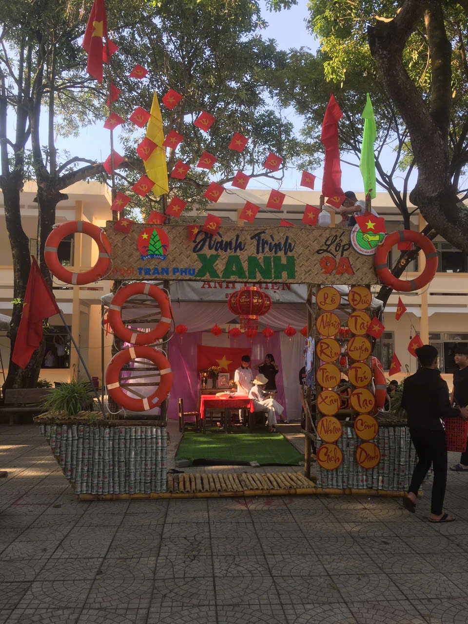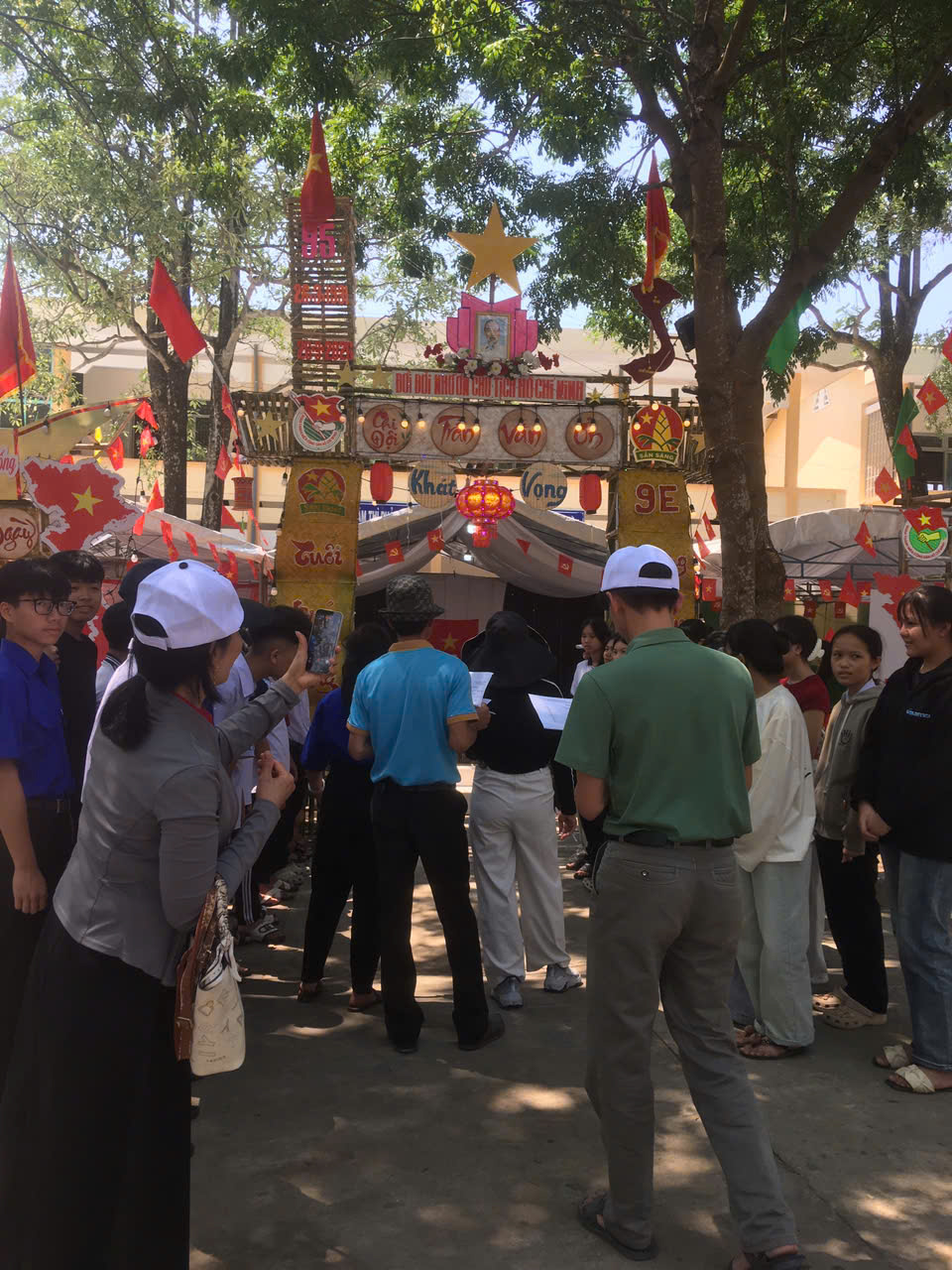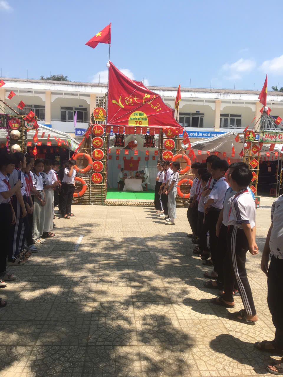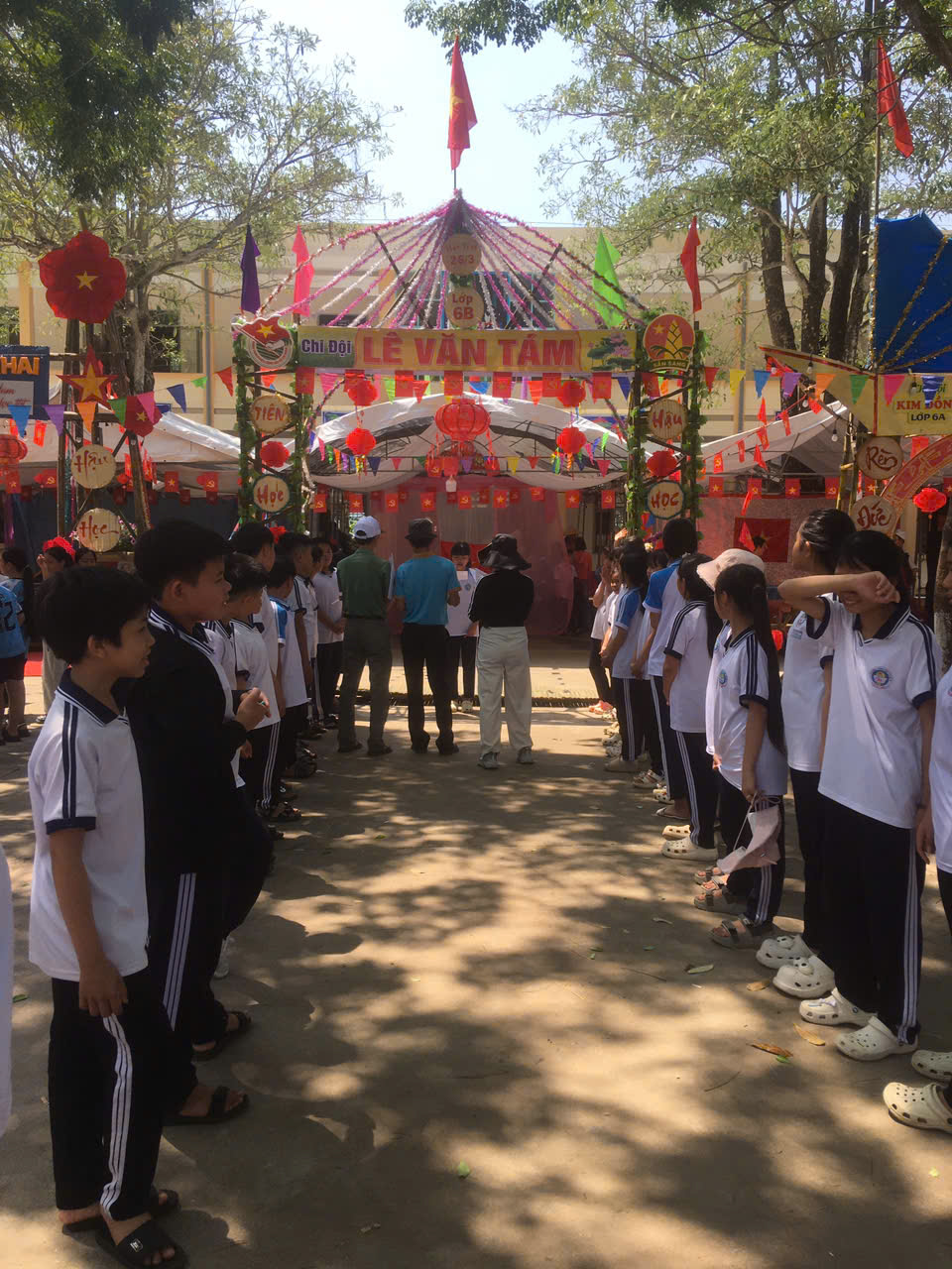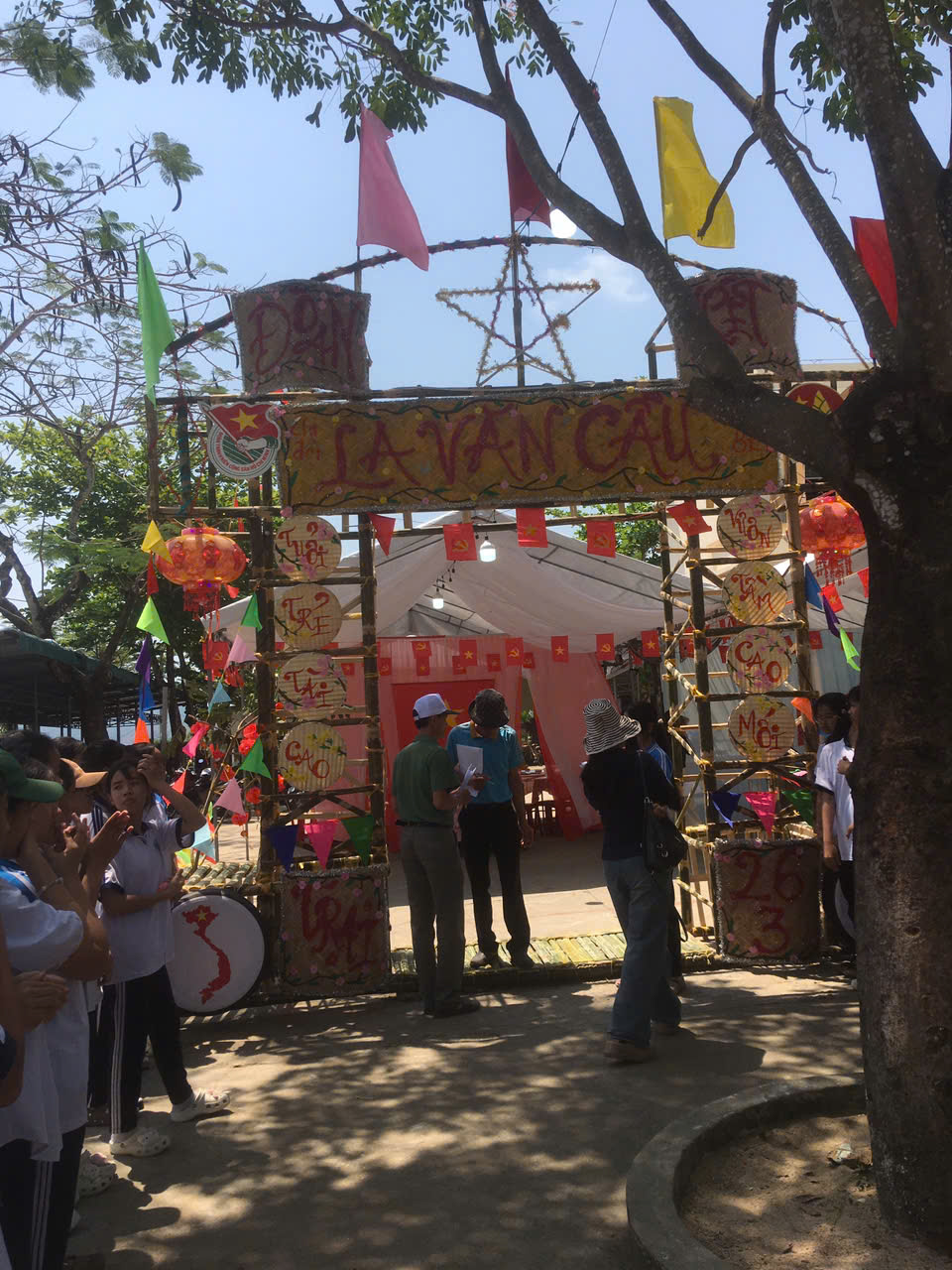 Dựng trại và trang trí trại: Các chi đội đã thể hiện sự sáng tạo qua những cổng trại đẹp mắt, mang đậm chủ đề và bản sắc riêng.