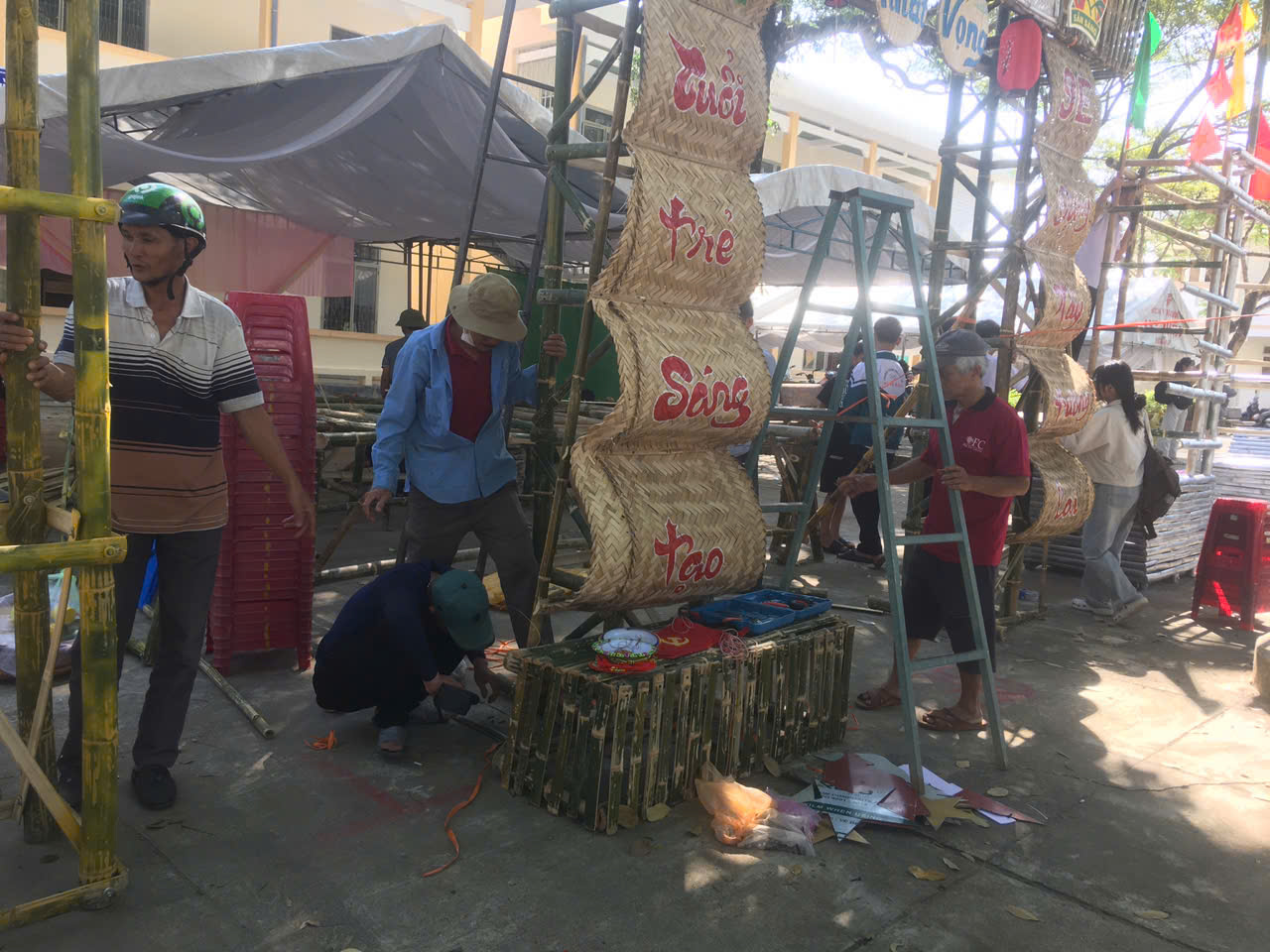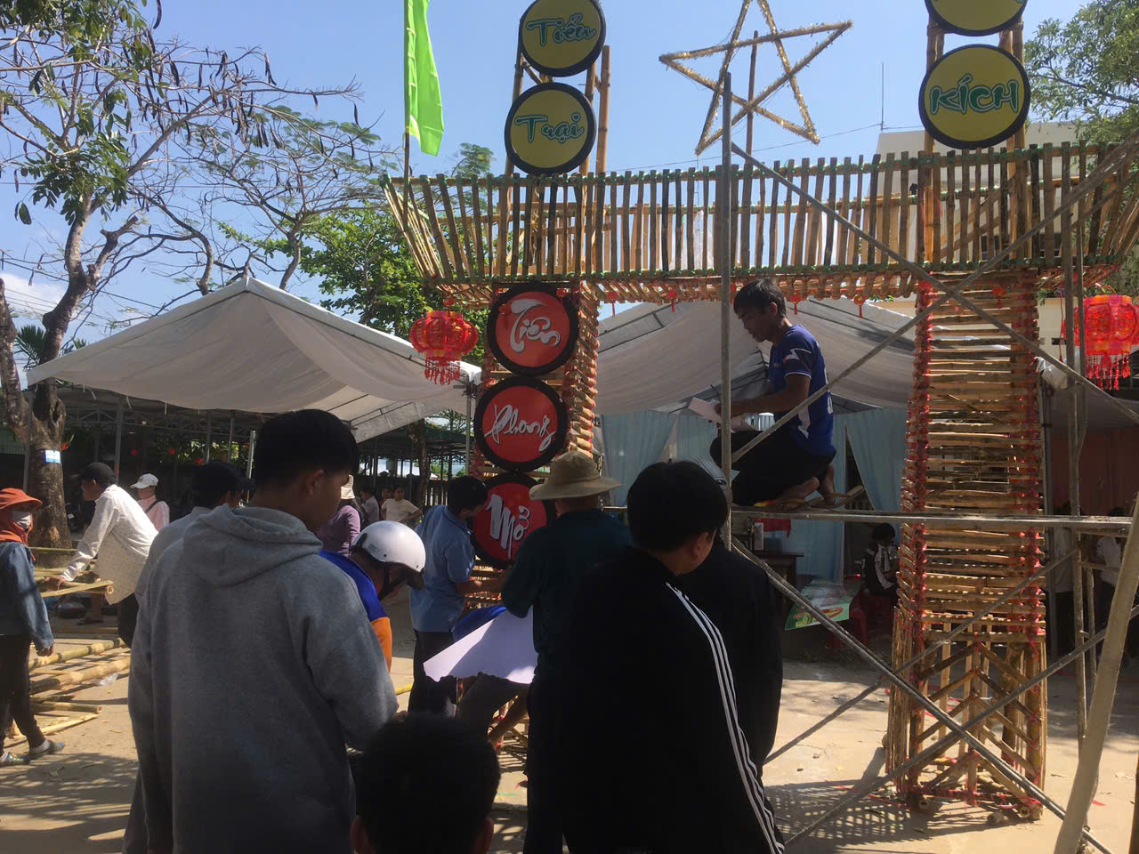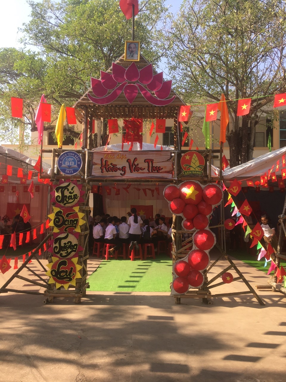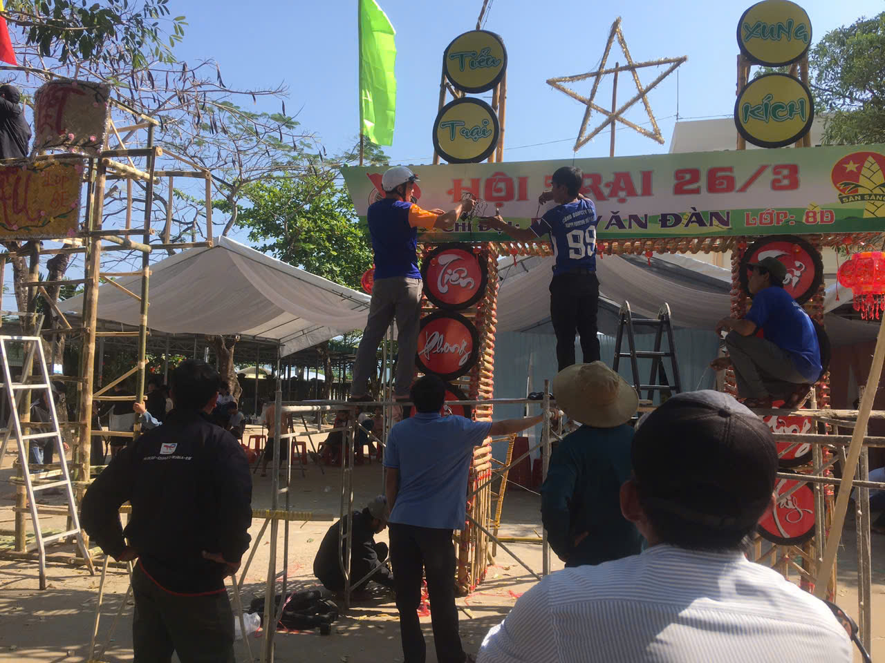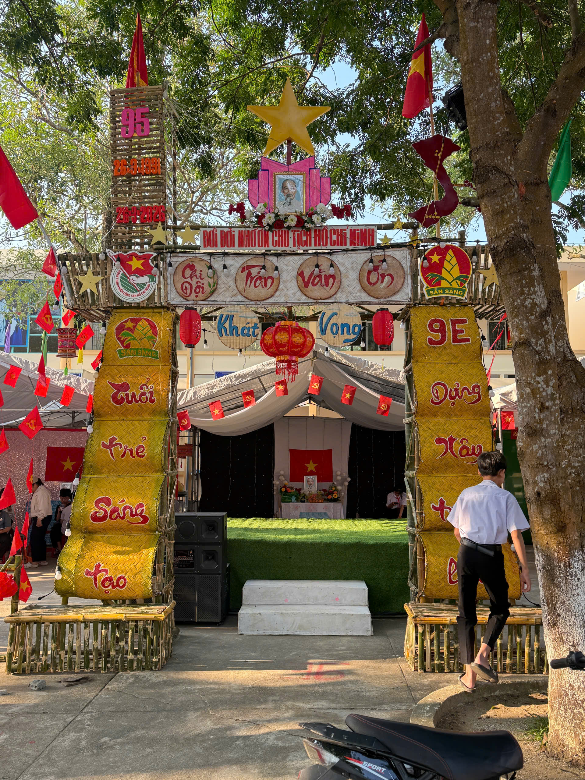 Dựng trại và trang trí trại: Các chi đội đã thể hiện sự sáng tạo qua những cổng trại đẹp mắt, mang đậm chủ đề và bản sắc riêng.