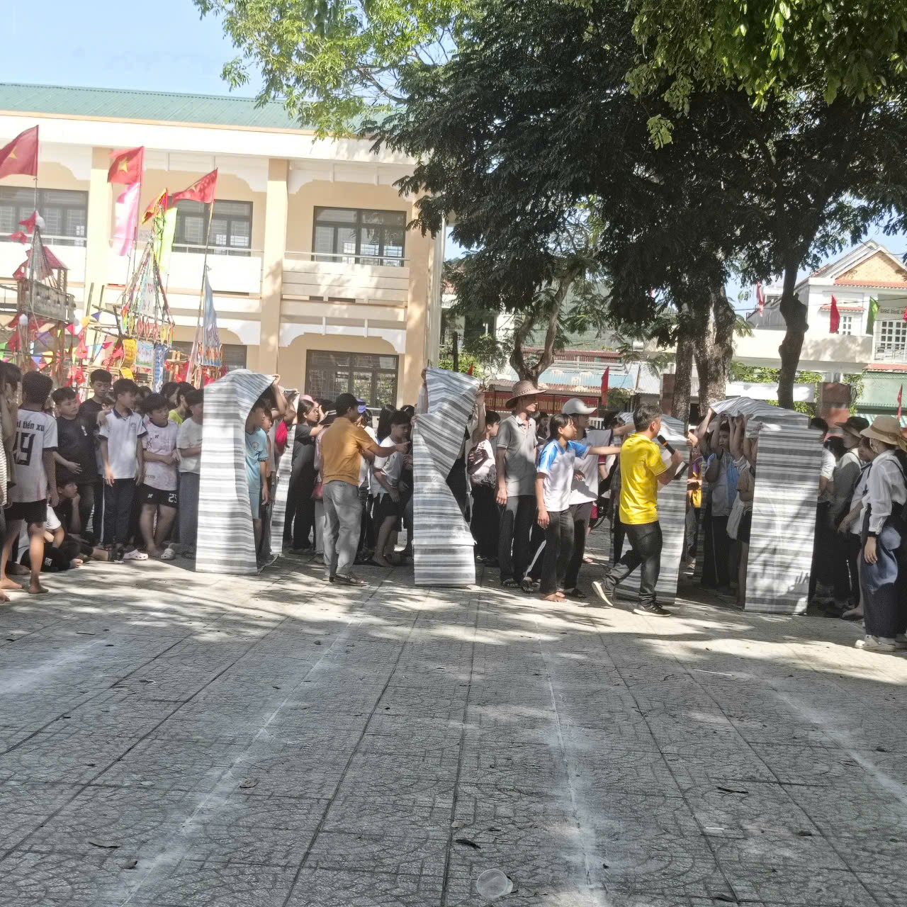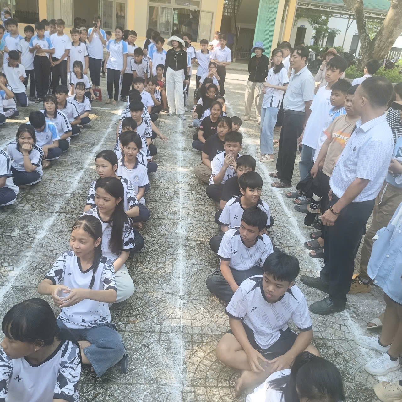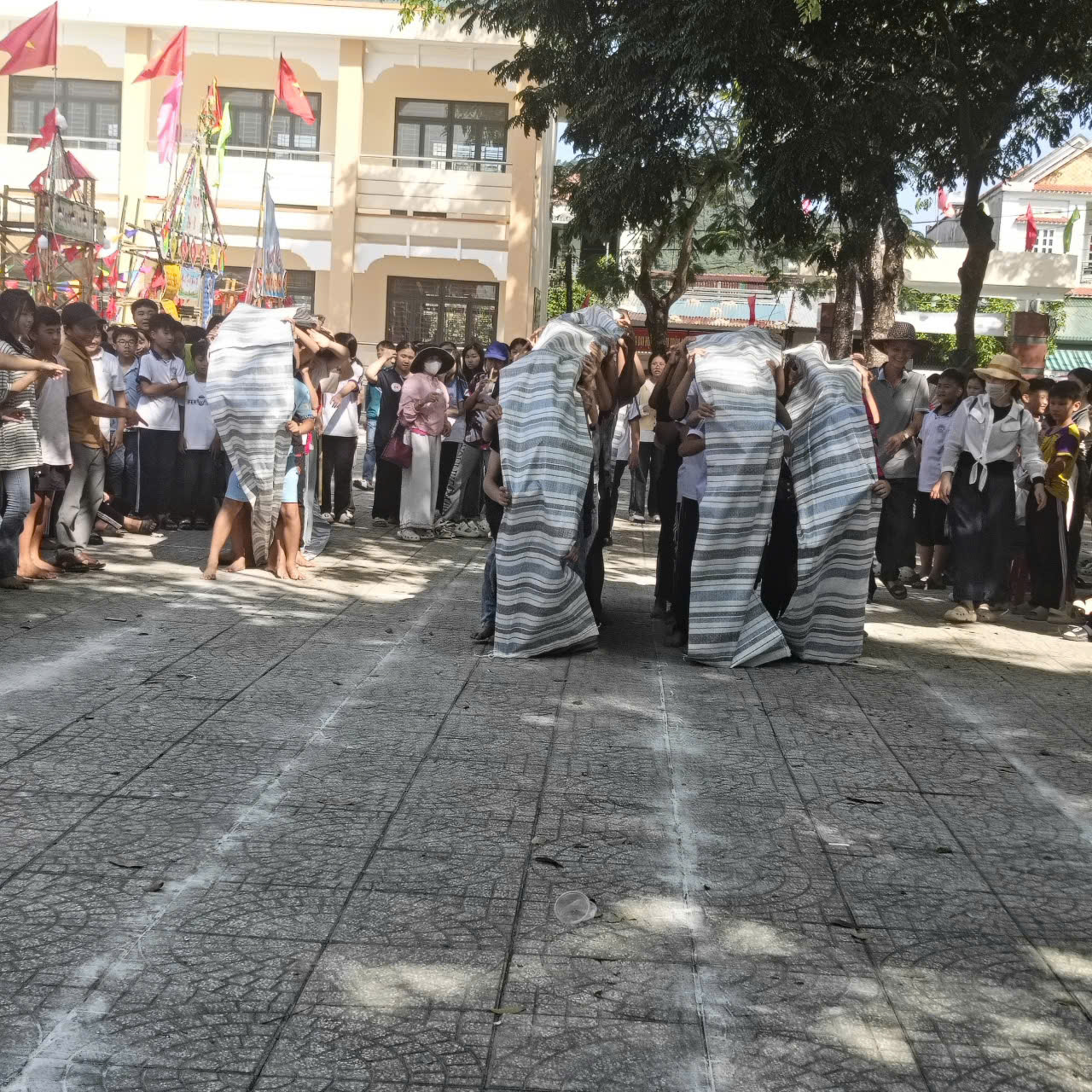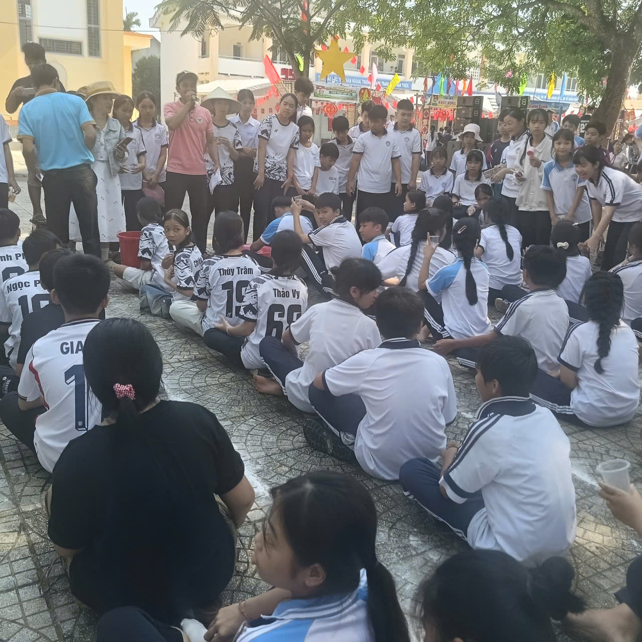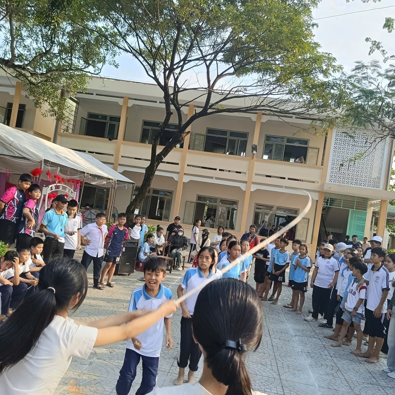 Các trò chơi vận động: như chuyền nước đổ chai, kẹp bóng tiếp sức, nhảy bao bố, nhảy dây tập thể… tạo nên không khí thi đua sôi nổi giữa các khối lớp.