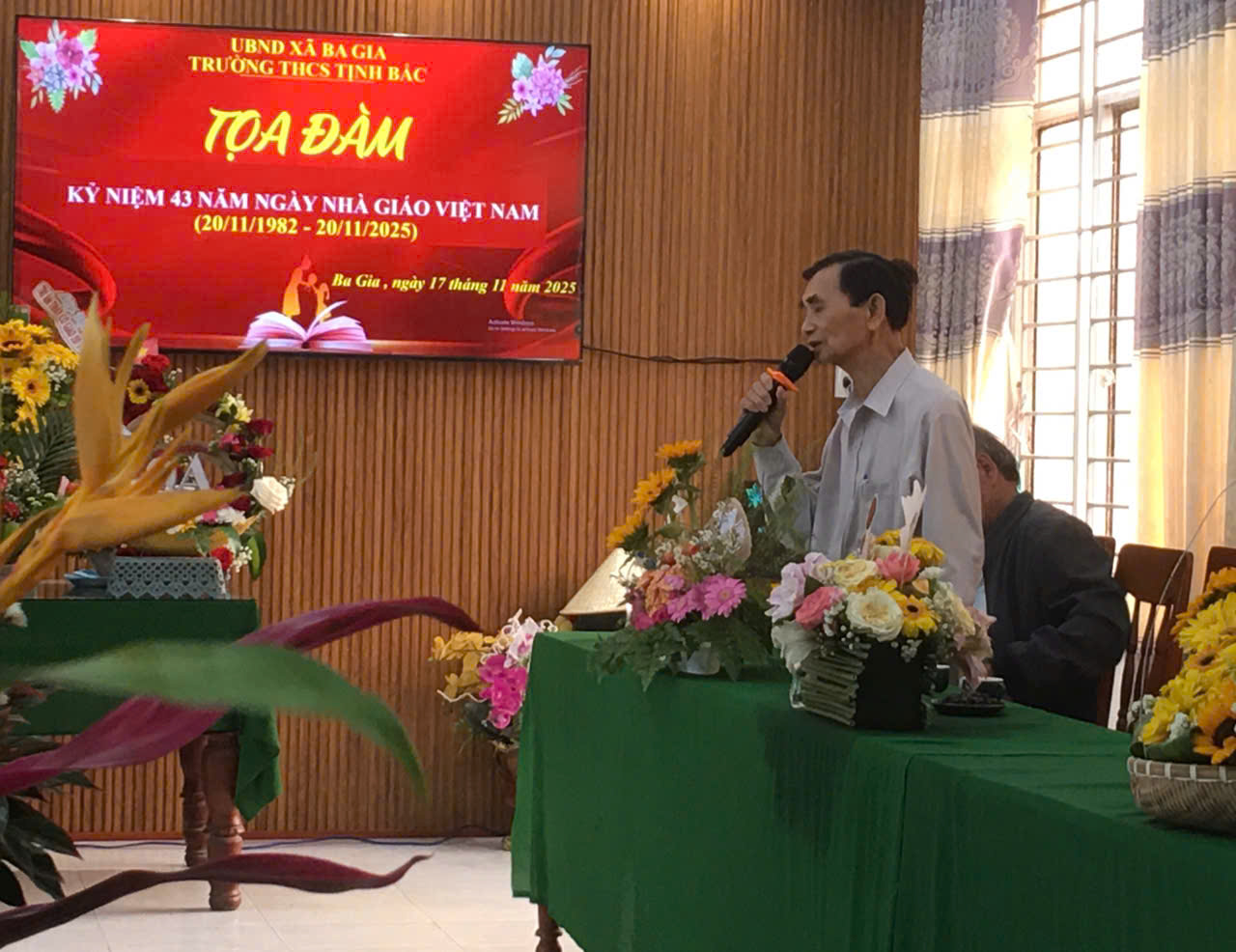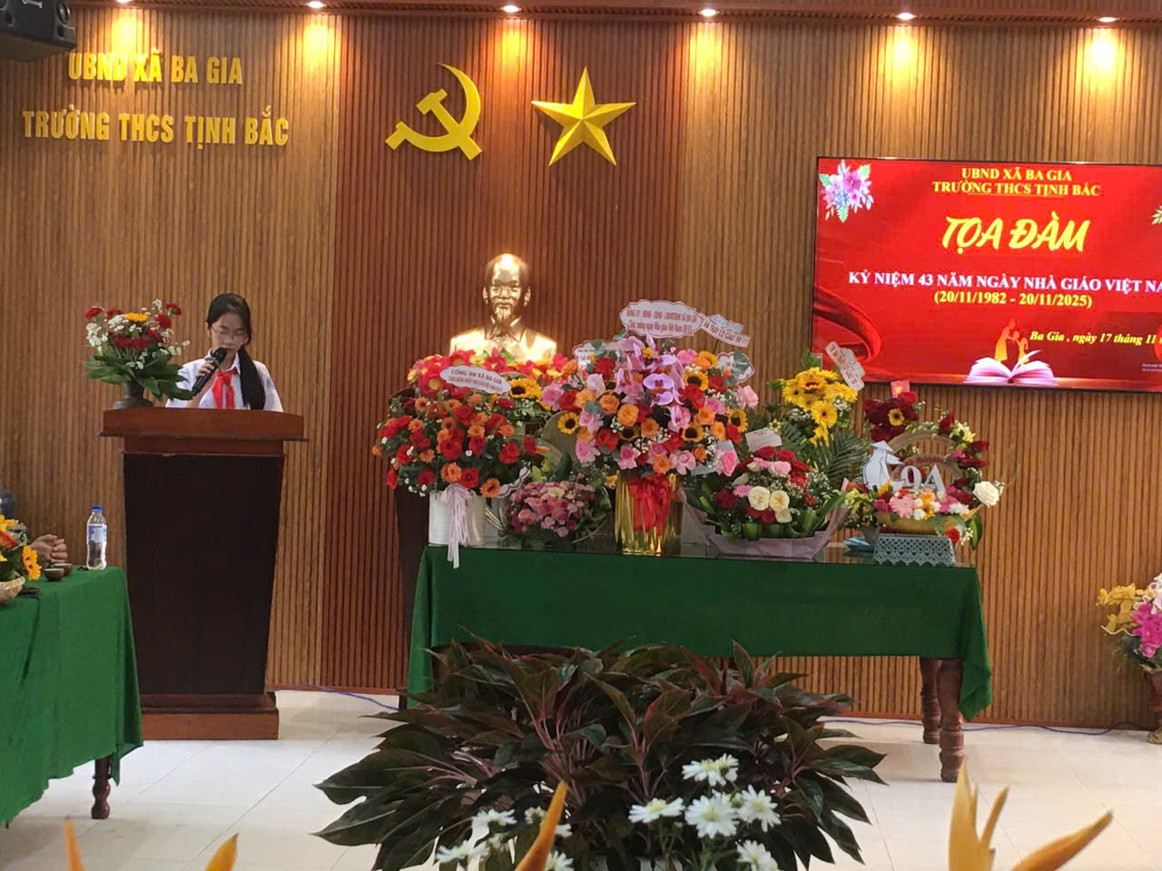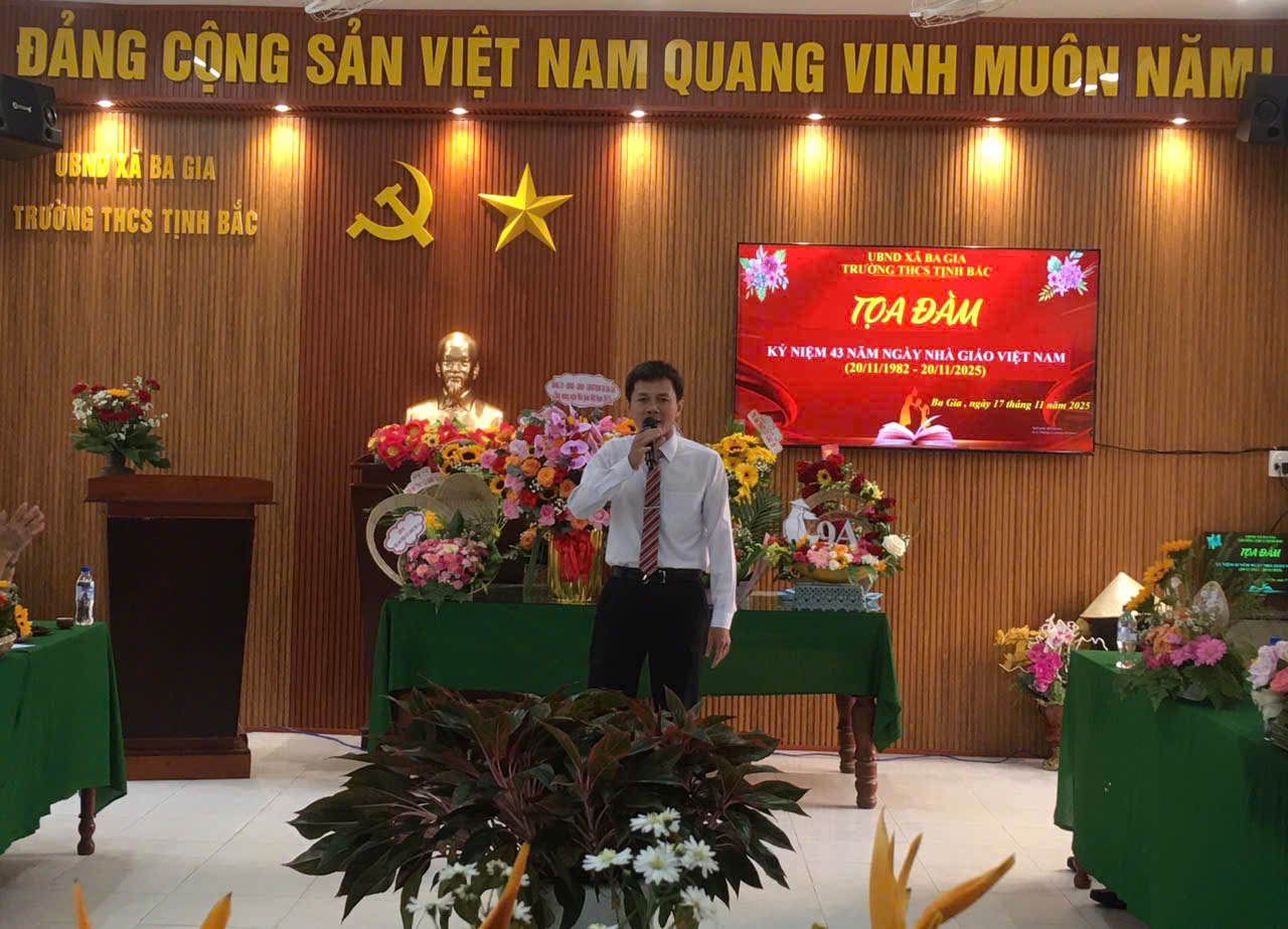 Vào chiều ngày 17/11/2025, Trường THCS Tịnh Bắc đã long trọng tổ chức buổi Tọa đàm Chào mừng kỷ niệm 43 năm Ngày Nhà giáo Việt Nam (20/11/1982 – 20/11/2025). Đây là dịp để toàn thể cán bộ, giáo viên, nhân viên nhà trường cùng nhau ôn lại truyền thống tôn sư trọng đạo cao đẹp và tri ân những đóng góp thầm lặng của các thế hệ nhà giáo.