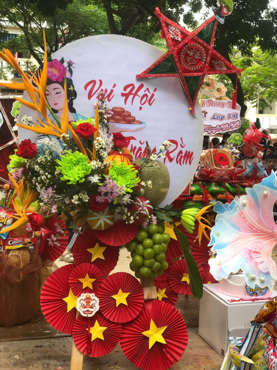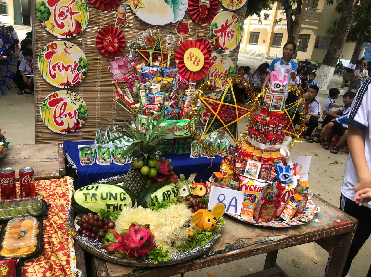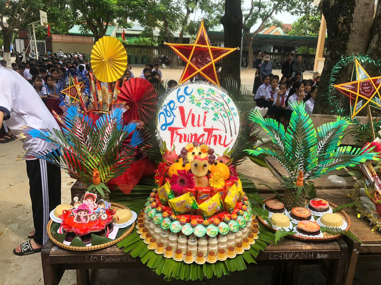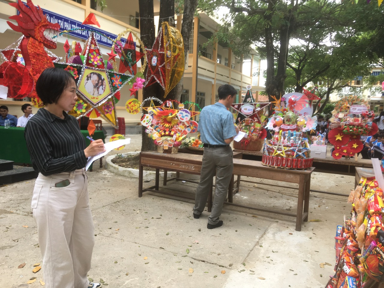 Sau phần lễ, chương trình trở nên sôi động và hấp dẫn hơn với phần thi trưng bày mâm cỗ Trung thu và lồng đèn sáng tạo đến từ 18 lớp học. Các sản phẩm đều được chuẩn bị công phu, thể hiện tinh thần đoàn kết, khéo léo và óc sáng tạo của học sinh. Ban giám khảo đã làm việc nghiêm túc, công tâm để lựa chọn những sản phẩm xuất sắc nhất.