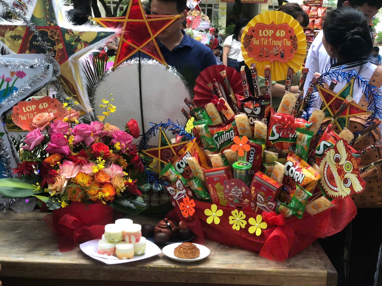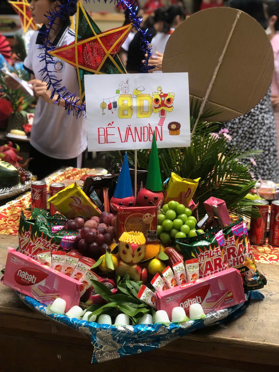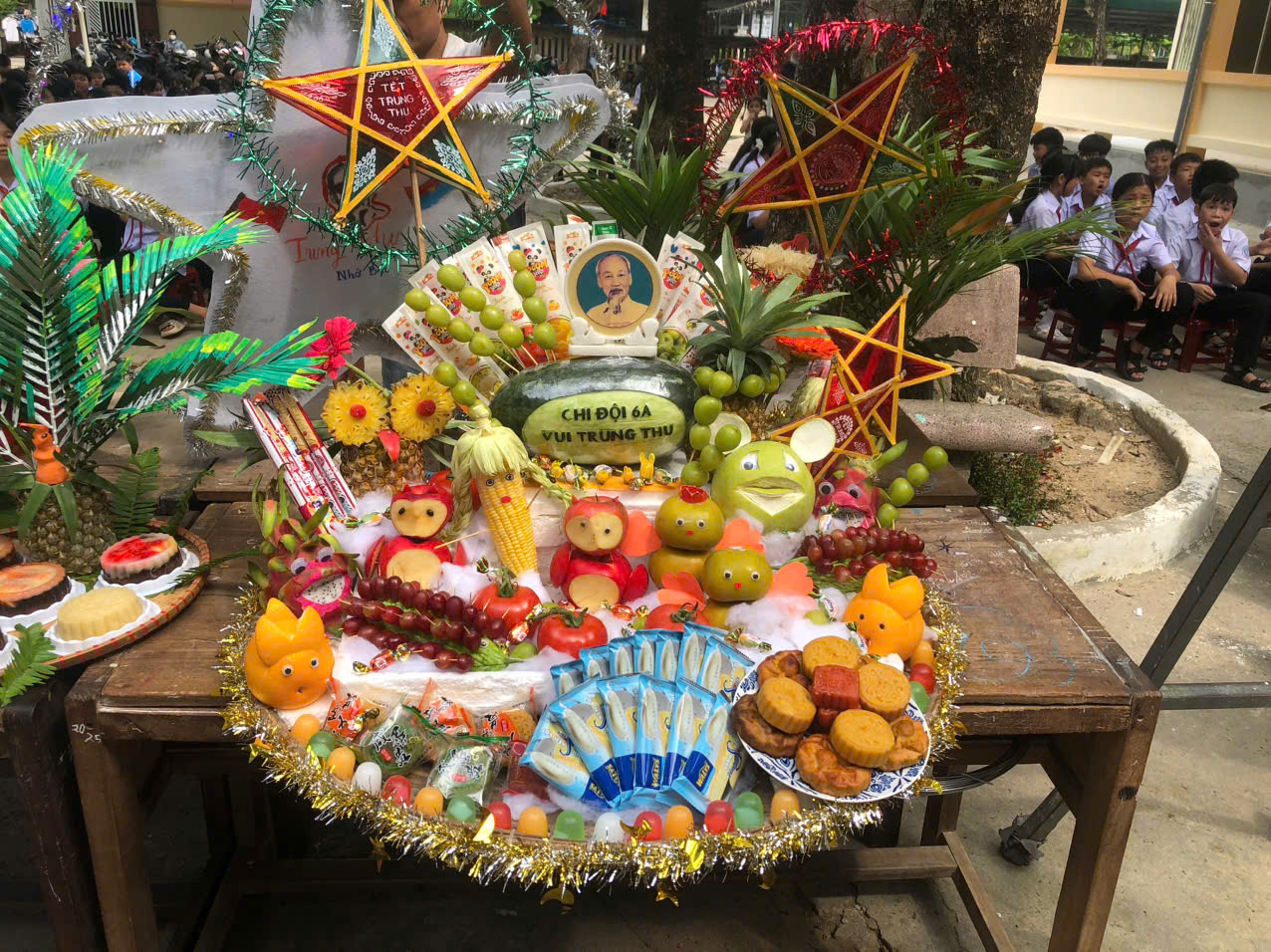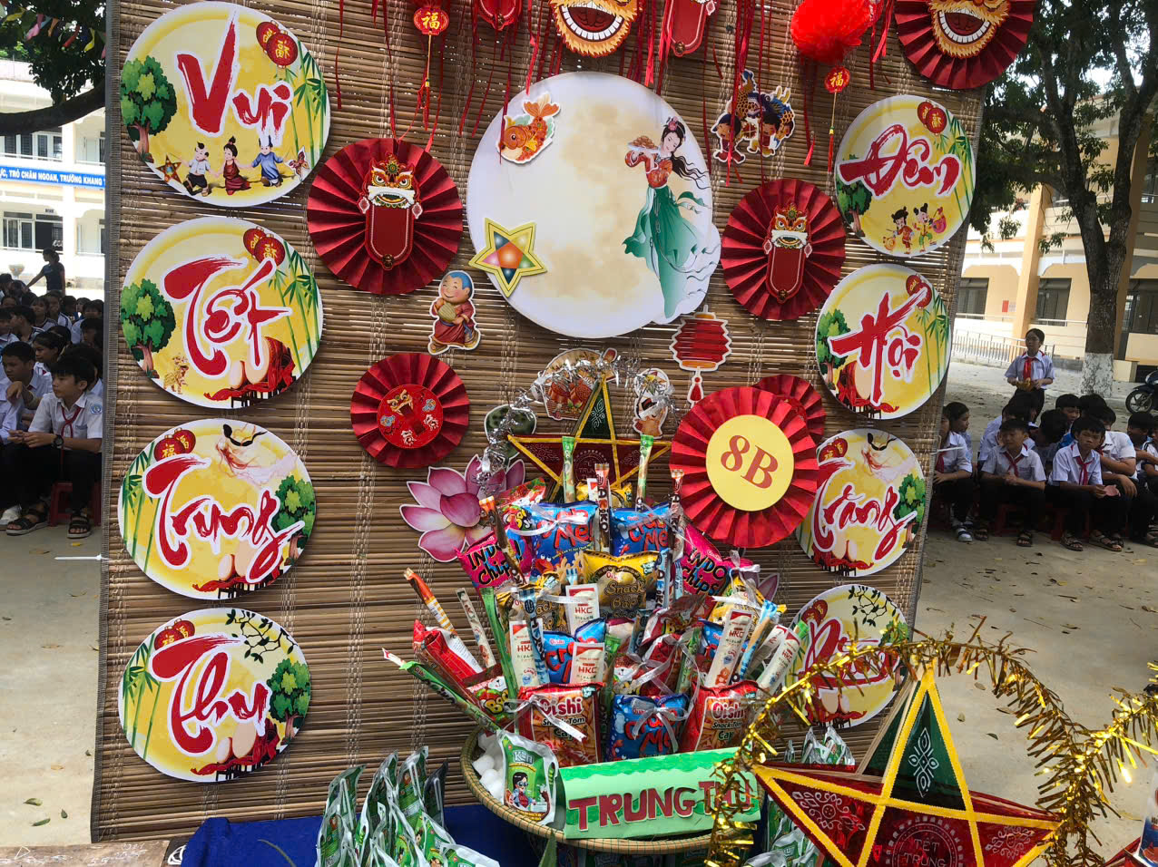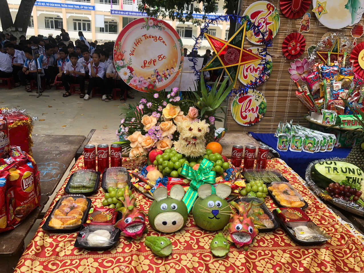 Sau phần lễ, chương trình trở nên sôi động và hấp dẫn hơn với phần thi trưng bày mâm cỗ Trung thu và lồng đèn sáng tạo đến từ 18 lớp học. Các sản phẩm đều được chuẩn bị công phu, thể hiện tinh thần đoàn kết, khéo léo và óc sáng tạo của học sinh. Ban giám khảo đã làm việc nghiêm túc, công tâm để lựa chọn những sản phẩm xuất sắc nhất.