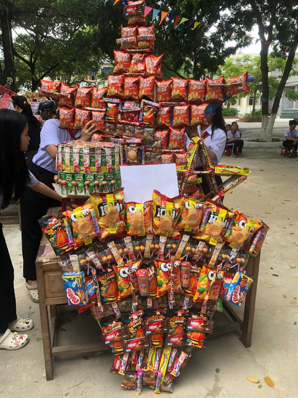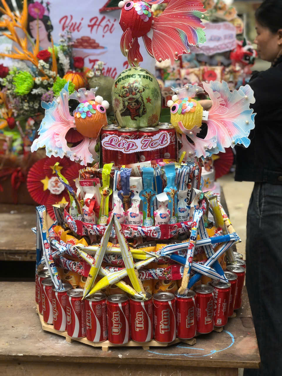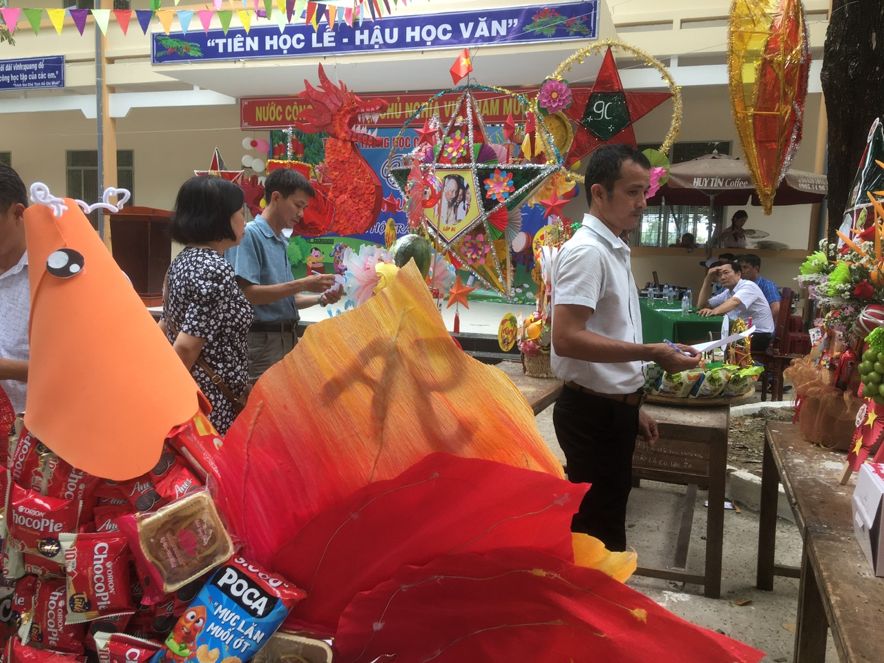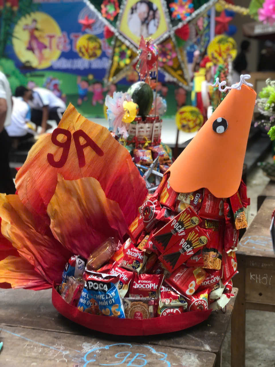 Sau phần lễ, chương trình trở nên sôi động và hấp dẫn hơn với phần thi trưng bày mâm cỗ Trung thu và lồng đèn sáng tạo đến từ 18 lớp học. Các sản phẩm đều được chuẩn bị công phu, thể hiện tinh thần đoàn kết, khéo léo và óc sáng tạo của học sinh. Ban giám khảo đã làm việc nghiêm túc, công tâm để lựa chọn những sản phẩm xuất sắc nhất.